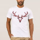 A cabeça simétrica, carmesim-vermelha do veado, e os antlers imprimiram na parte dianteira.