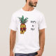 Visto ativo contra o pescoço com a mensagem "Vegan Comida Rocks". Gráfico de crânio de abacaxi super legal e língua na mensagem da bochecha- "Morte por Fruta!"