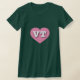 Esta camiseta apresenta um coração legal, cor-de-rosa, contendo as letras maiúsculas, brancas e em negrito VT, a abreviatura oficial de Vermont, o estado verde da montanha.