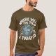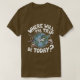 Uma camiseta distinta para amantes de viagem com uma frase escrita nela: Onde será a viagem hoje?Com um simples design de um avião circulando o mundo, um estilo distinto para amantes de viagem e viagens.