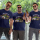 Personalize suas próprias camisetas para viagem de despedida de solteiro para uma escapada em Las Vegas. Uma camiseta legal com elementos essenciais de cassino, como um baralho de cartas, fichas de pôquer e roleta com 'Viagem a Vegas' em letras amarelas. Camisetas divertidas para jogadores para todo o seu grupo.