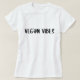 Esta t-shirt "Vegan Vibes" apresenta uma inscrição negra com um coração e uma folha.