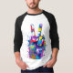 Camiseta Básica, Mangas Raglan 3/4, Branco/Preto, Adulto M