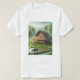 Esta design de camiseta tranquila captura a essência da vida rural no Sudeste Asiático. Uma casa tradicional de telhado chocado fica no meio de uma exuberante plantação de arroz verde, onde indivíduos que trabalham duro tendem para suas plantações. O búfalo d'água no primeiro plano adiciona autenticidade a esta cena matinal.