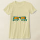 Um turista de estilo retrô bonito, vintage, ilustrou a praia, uma camiseta de desenho animada de óculos de sol totalmente radical, unisex deluxe. Faça um turismo divertido inspirado hoje. Esta design de camiseta tem um reflexo da praia no pôr do sol. Você não gostaria de estar lá agora?