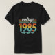 Illustration de style rétro, cette image est une illustration numérique conçue dans un style rétro et vintage. Le fond noir uni contraste fortement avec les éléments colorés. En haut de l'image, le mot « vintage » est écrit en cursive blanche. Sous « vintage », une ligne horizontale présente un dégradé de couleurs : orange, jaune et bleu sarcelle. Le trait est légèrement vieilli, renforçant l'aspect vintage. Sous la ligne, le mot « 1985 » est bien visible dans une police grasse et massive. Chaque chiffre est entouré d'une série de lignes circulaires concentriques de différentes couleurs : rouge, orange, bleu sarcelle et bleu. Les chiffres sont disposés sur un fond noir, ce qui les met en valeur. Sous les chiffres, la silhouette d'une chaîne de montagnes avec un coucher de soleil. Les montagnes sont représentées en noir, et le soleil est positionné derrière elles, créant un effet de dégradé de l'orange au jaune. Un petit oiseau vole près du soleil, ajoutant une impression de mouvement et de vie à la scène.