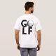 Um clássico design de t-shirt de golfe apresenta uma ilustração limpa e minimalista de uma bola de golfe colocada de forma destacada no design, rodeada por um simples e elegante tipo negrito. Um layout com tema de golfe adiciona um toque de eterno ao design.