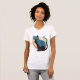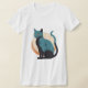 A minimalist, t-shirt design with a vintage twist, featuring a sleek and stylized cat silhouette against a faded, awosome, bright.