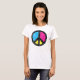 T-shirt Groovy do sinal de paz. O sinal de paz é enchido com os segmentos azuis, vermelhos, e amarelos. O design é riscado para um groovy, olhar do vintage. Um t-shirt legal da paz!