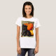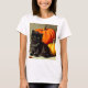 Camiseta com um gato preto de Halloween e abóboras! Esta pequena bola de pelo fica adoravelmente ao lado de duas abóboras laranja. Um presente de excelente para festas de Halloween e amantes de gatos!