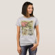 Um T romântico do vintage com uma torre Eiffel, as flores, e um pássaro em uma gaiola.