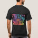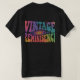 Uma espiral psicodélica de cores traz uma vibração retrorreflectora à frase "Reminiscência Vintage", escrita em uma fonte combinando e girando.