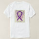 A consciência da Violência Doméstica usa uma fita roxa para sua consciência de causa. A arte da camisa apresenta uma pintura de anjo de fita de reconhecimento roxo. A mensagem da camisa do anjo de conscientização anota "Consciência Esperança Violência Doméstica". Na parte de trás da camisa está a mensagem de causa "Espero e apoio a consciência para acabar com a violência doméstica". A roupa de anjo de consciência roxo pode ser personalizada com mensagens personalizadas para fazer roupas de evento para a arrecadação de fundos, camisas de caminhada do grupo, presentes de camisetas de conscientização ou outras ocasiões de eventos de causas especiais para a mercadoria para ajudar a aumentar a conscientização da causa em público para a ajuda da sociedade em criar ajuda e causar mudanças.