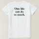Design apresenta uma imagem da pintura, "A Visitação" do artista Rafaello Sanzio como design principal. O texto abaixo diz, "Você não está feliz que ELA tenha sido pró-vida?" em letras negras. O reverso diz: "Uma vida pode fazer tanto."