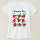 Summer Fund Watermelon Slices & Hearts Tee, da designer americana Virginia Wright, está com corações vermelhos esboçados em fatias de melancia pretas e sementes de melancia espalhadas por todo o design com o texto, Summer Fun. Este topo é ideal para o visto no verão.