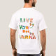A camisa caracteriza o logotipo de Sanshin no design dianteiro e original pela canção de natal Corey do artista de St Louis na parte traseira. A canção de natal é um velho amigo e um suporte de Sanshin, e sua arte foi mostrada durante todo a área de St Louis. Proporciona serviços de design gráficos para muitos grupos não lucrativos de St Louis e é ativa com centro da meditação do zen de Shinzo e seu programa de apoio a os desfavorecidos da prisão, Dharma interno.