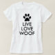 Woof vivo do amor. Paródia/paródia do riso vivo do amor. Amante do gato que diz o cão/citações. Isto está igualmente disponível em camisas escuras com um impressão branco da pata.