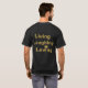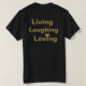Camiseta preta e dourada "Vivendo, Rindo e Adorando" inspiradora. A cor preta do plano de fundo pode ser alterada pelo cliente. Por celeste@khoncepts.com
