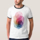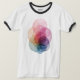 T-shirt presents a simple yet striking abstract beauty. This design features an abstract composition of translucent, organic shapes in varying sizes, harmoniously layered over one another. The vibrant blend of reds, blues, sky blues, purples, orange, yellow and pink creates a lively and dimensional pattern.