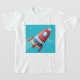 Sonhando em voar pelo espaço em uma nave espacial. Bem, então esta design responderá a esse sonho. É de uma espaçonave colorida que está zimbando pelo espaço. O foguete é multicolorido e tem uma trilha de vapor pela parte de trás. É colocado sobre um fundo azul. Esta design de espaçonave voadora parece excelente nesta camiseta de meninas. Perfeito para si mesmo ou como presente