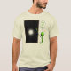 Nossa design de camiseta de alienígena "Você Está Aqui" mostra o sistema estelar através de uma janela. Um "homenzinho verde" está apontando uma estrela no céu noturno.