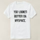 A camiseta satisfez completamente minhas expectativas. Tecido de ótima qualidade, bom caimento, estampa nítida, belas cores. Sem falar na satisfação de poder vestir uma camiseta que realmente tem a cara da gente. Muito bom. Estampa, cores e tudo o mais.