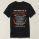 Uma design de camiseta humorística com a frase "Você pode ser um mecânico se..." acima de uma imagem de um carro sendo trabalhado pela mecânica de automóveis.