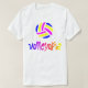 Portanto, se a utopia é um lugar de perfeição ideal, pensamos que a quadra de vôlei deve ser a Volleytopia. Design apresenta um voleibol colorido e texto: Volleytopia.