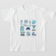 VSCO GIRL WORLD com gráficos azuis na frente. Os gráficos incluem uma câmera, uma garrafa de água, um arranhão, mochila, calçados e tartaruga.