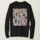 Christmas-themed pattern featuring Santa Claus, reindeer, snowmen, elves, Christmas trees, candy canes, and snowflakes on a white background