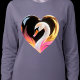 This image is special because it juxtaposes the classic elegance of the white swan with a bold, modern Pop Art aesthetic. The swan's serene portrait is dynamically framed by a glossy, 3D heart featuring a high-impact blend of black, neon pink, and bright gold/orange. It is a unique and energetic design for romantic themes, nature-inspired art, or modern graphic prints.
