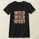 Design de texto "Selvagem Selvagem Oeste" com letras riscadas em cores amarela, vermelha e bege