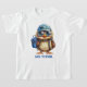 Camiseta Wise Owl com a mochila azul, chapéus e uma pálpebr
