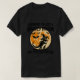 Um lindo dragão barbudo vestido como uma bruxa anda de vassoura em frente a uma lua laranja brilhante, cercado por morcegos voadores nesta divertida design do Halloween.