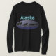 Uma noite de inverno fria, cruel e lua. Um bando de lobos faminto caça para ficar vivo. A leitura de texto "Alaska" em azul e branco brilhantes também é exibida.