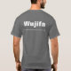 Esta é a camiseta de Wujifa com o Wujifa em grandes letras na parte traseira e o Wujifa que diz "o é onde você está e aquele é o lugar onde você começa" sob ela.