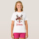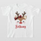 Teto de Natal com uma rena fofa com um nariz vermelho grande, chibatadas, e um arco de xadrez em seus chifres. Adicione o nome da sua filha em um script vermelho.