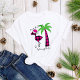 Camiseta Xadrez Palm Tree Flamingo Feliz e Brilho Mulheres