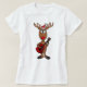 Divertido bonito a rena cheirada vermelha que joga um design vermelho dos desenhos animados da guitarra é original e divertimento e uma grande ideia do presente. É cheio da personalidade. Pode igualmente adicionar o texto feito sob encomenda e mudar a cor do fundo ao pedir. Excelente para melómanos e para o Natal.