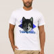 Camisa básica de Canvas de Bella para homens mostrada na cor branca com gargalo da tripulação, mangas curtas, mostrada com uma impressão de arte de cabeça de Lobo com um texto grande e ousado de Yellowstone. Personalize esta camisa ou comprar como está. Imagem do stock all-free-download.com