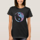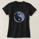 Camiseta preta Hanes Nano, de uso feminino, com a imagem de um símbolo yin yang, num corante azul e rosa persuasivo.Veja toda a coleção de Roupa Psychedelic dos anos 60 nos TOUCHES ESPECIAIS| Seção Favoritos para festas.