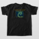 Camiseta preta com círculos concêntricos preto e dourado design com o logotipo Y-NOT-ME "GO AHEAD you CAN DO IT" no centro. No verso está uma imagem colorida de um fitoplâncton ampliada muitas vezes e "VOCÊ PODE SER UM BIÓLOGO MARINHO SE ESTUDAR DURO O SUFICIENTE" e "FOTOPLANKTON A FUNDAÇÃO DA CADEIA OCEÂNICA DE COMIDAS". Nunca é cedo demais para encorajar jovens pessoas a entender o valor do conhecimento, especialmente sobre o mundo natural.