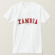 Verifique para fora este t-shirt da Zâmbia! É você da Zâmbia? Você tem um amigo ou um membro da família que amem a Zâmbia? Em caso afirmativo, este t-shirt da "bandeira" é exatamente o presente que você está procurando! As características de design "Zâmbia" na rotulação vermelha arqueada na pia batismal clássica da faculdade.
