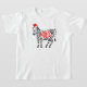 Uma zebra com a palavra Noel escrito em seu corpo e em vestir um chapéu do papai noel.