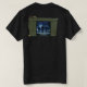 Design único militante da série "É zero escuro 30 em algum lugar" logotipo circular Front Pocket Back: Desert Night Tactical Scene exibido em uma munca Este design é para camisas escuras.
