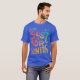 Um design de camiseta vibrante com o texto "Zest for Zenith" em uma fonte divertida e multicolorida, que lembra um pôr do sol. O design é arrojado e atraente para os olhos, com as cores em transição suave de laranja para amarelo para rosa. O texto está centrado no peito da camisa, com um pequeno gráfico colorido de uma explosão solar abaixo dela. O design é perfeito para quem ama viver a vida ao máximo