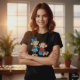 "This relatable cartoon design features a contrast in emotions between two monkeys, Zina and Mimo. Zina, in her blue polka-dot dress and bow, stands with a thoughtful expression and a comforting hand on Mimo's shoulder. Mimo, sitting in his blue overalls, looks apathetic or bored. The scene captures a common dynamic in relationships or friendships, blending care and indifference. The vibrant, classic cartoon style makes this a charming yet slightly humorous image. This versatile design is suitable for products aimed at couples or friends, especially those who appreciate lighthearted, observational humor about relationships. Imagine it on apparel, humorous greeting cards, or relatable stationery."