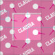 Bolas de golfe no esporte camisetas repetem tecido de esporte com padrão rosa personalizado. Bolas de golfe brancas sobre uma teta de golfe rosa-quente com uma cor de fundo de rosa claro que pode ser alterada se necessário. Ideal para golfistas e golfistas. Personalize com sua própria escolha de nome, lê atualmente Claudia. Arte e projetada por Sarah Trett.