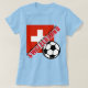 Bandeira de suiça com bola de futebol. Anime-se com sua equipe de futebol suisse favorita este ano e todo ano! Camisas de futebol, capuzes e roupa para adultos e crianças. Uma grande bola de futebol, a bandeira suíça, e tudo feito em cores brilhantes. Raiz para a sua equipe de futebol! Adicionar texto também, se preferir, como uma data. Disponível em t-shirts, camisetas orgânicas, capuzes, sacos para todes, suores, canecas de viagem, canecas cerâmicas, botões, chaveiros e muito mais.