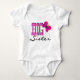 Camisetas da Irmã Grande, capuzes, tampas de tanques, canecas, cartões, adesivos, sacos de tote, e mais com texto rosa e preto quente e uma mosca rosa e rosa.